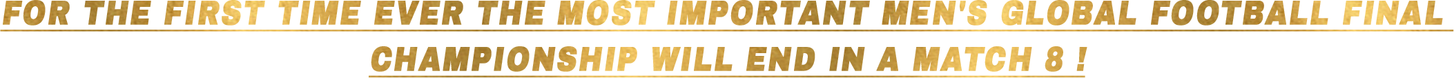 FOR THE FIRST TIME EVER THE WORLD'S GREATEST MEN'S FOOTBALL TOURNAMENT WILL END IN A FINAL CHAMPIONSHIP MATCH 8.
